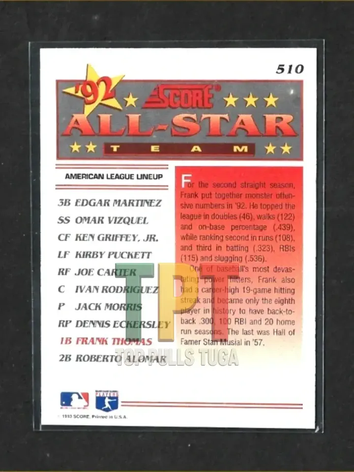 1993 Score - #510 - Frank Thomas frente1993 Score - #510 - Frank Thomas verso