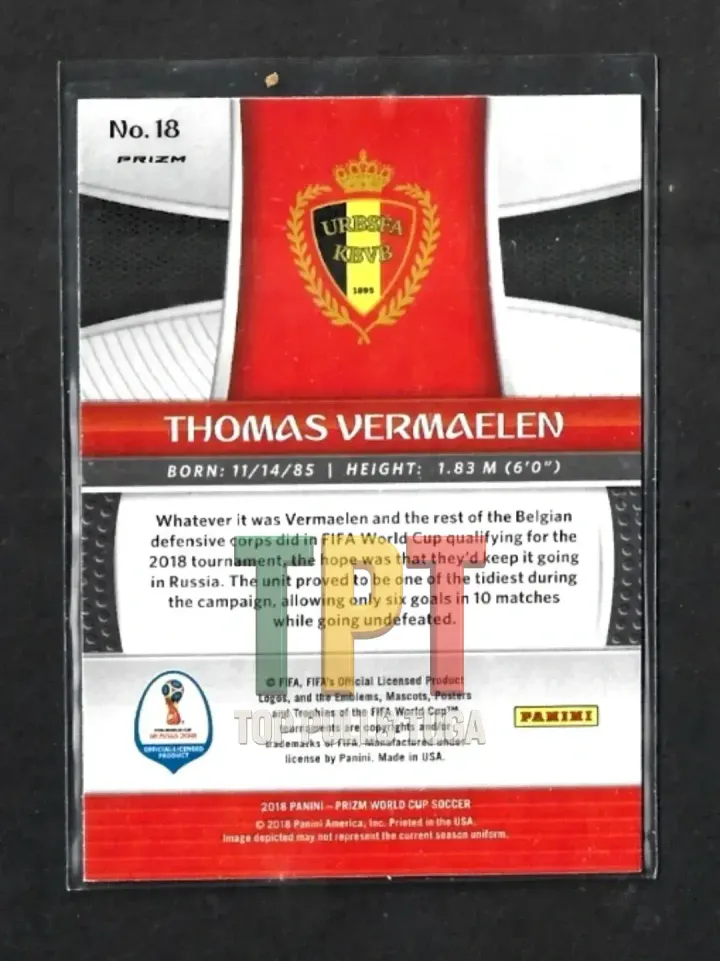 2018 Panini Prizm World Cup - Lazer Prizm #18 - Thomas Vermaelen frente2018 Panini Prizm World Cup - Lazer Prizm #18 - Thomas Vermaelen verso