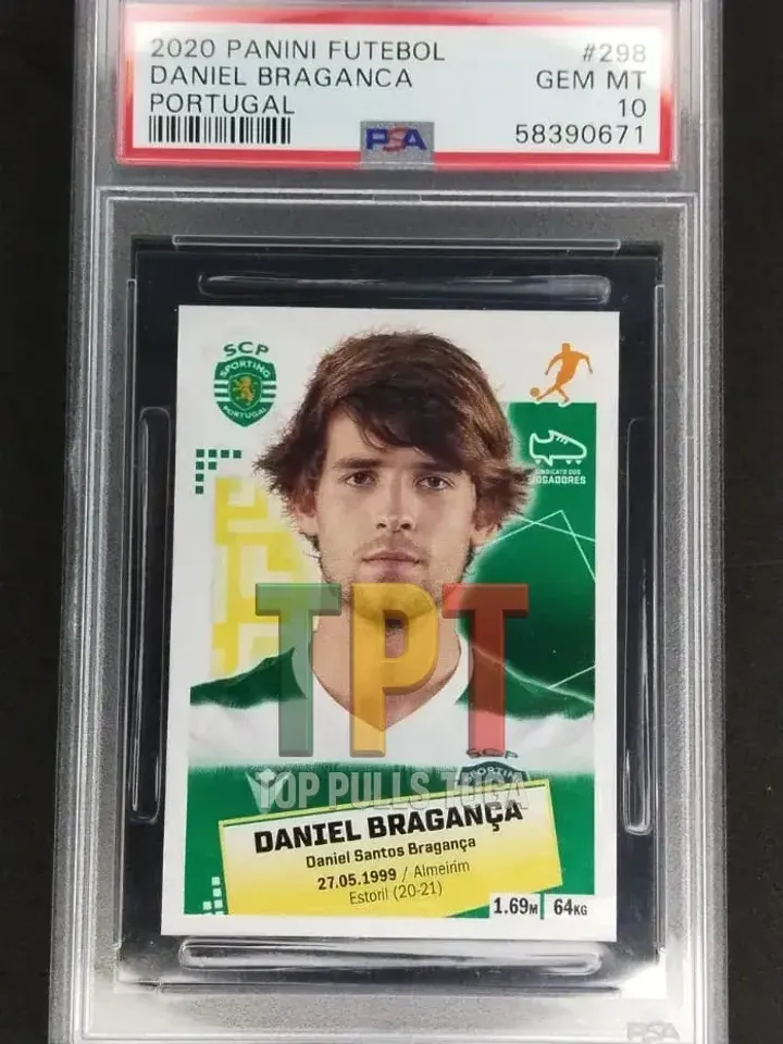 2020-21 Panini Futebol Daniel Bragança Rookie Sticker #298 PSA 10 frente2020-21 Panini Futebol Daniel Bragança Rookie Sticker #298 PSA 10 verso