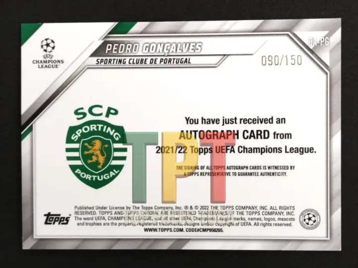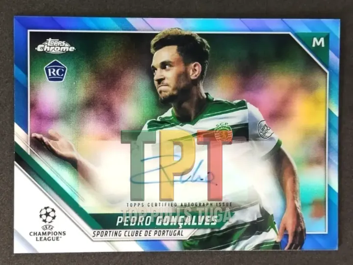 1x2021-22 Topps Chrome UCL Pedro Gonçalves Blue Refractor Auto /150