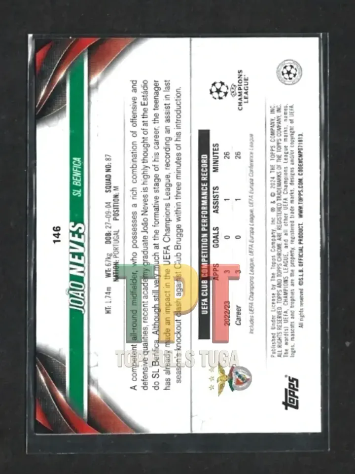 1x2023-24 Topps Chrome UEFA Club Competitions Sapphire Edition - #146 - João Neves