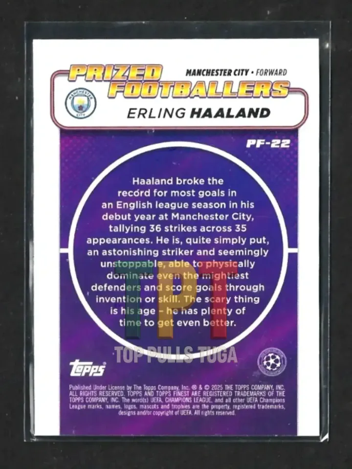 1x2024-25 Topps Finest UEFA Club Competitions - Prized Footballers #PF-22 - Erling Haaland