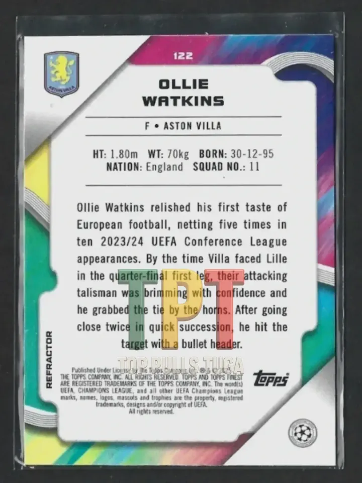 1x2024-25 Topps Finest UEFA Club Competitions - Refractor #122 - Ollie Watkins