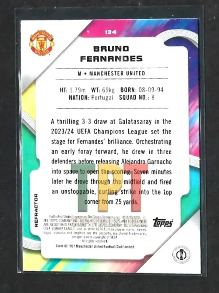 1x2024-25 Topps Finest UEFA Club Competitions - Refractor #134 - Bruno Fernandes