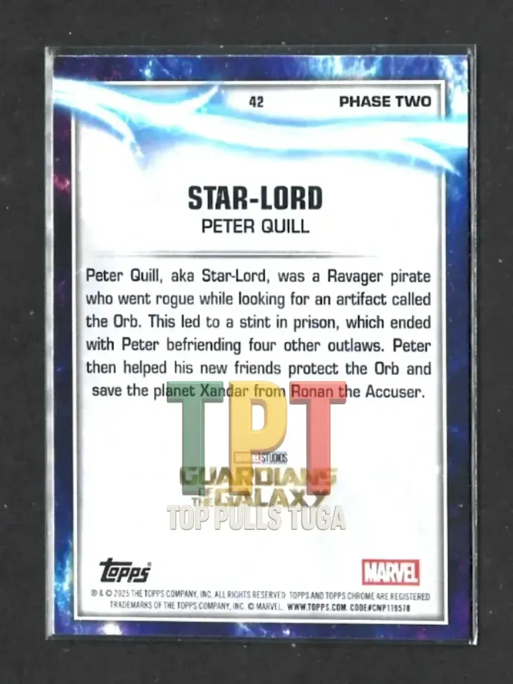 2025 Topps Chrome Marvel Studios - Sky Blue RayWave Refractor #42 - Star-Lord