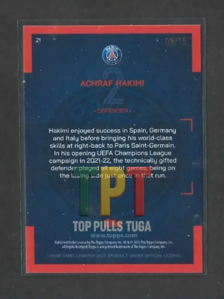 "Hakimi teve sucesso em Espanha, Alemanha e Itália antes de trazer as suas habilidades de classe mundial como lateral-direito para o Paris Saint-Germain. Na sua campanha de estreia na UEFA Champions League em 2021-22, o defensor tecnicamente dotado jogou todos os oito jogos, perdendo apenas uma vez nessa série."