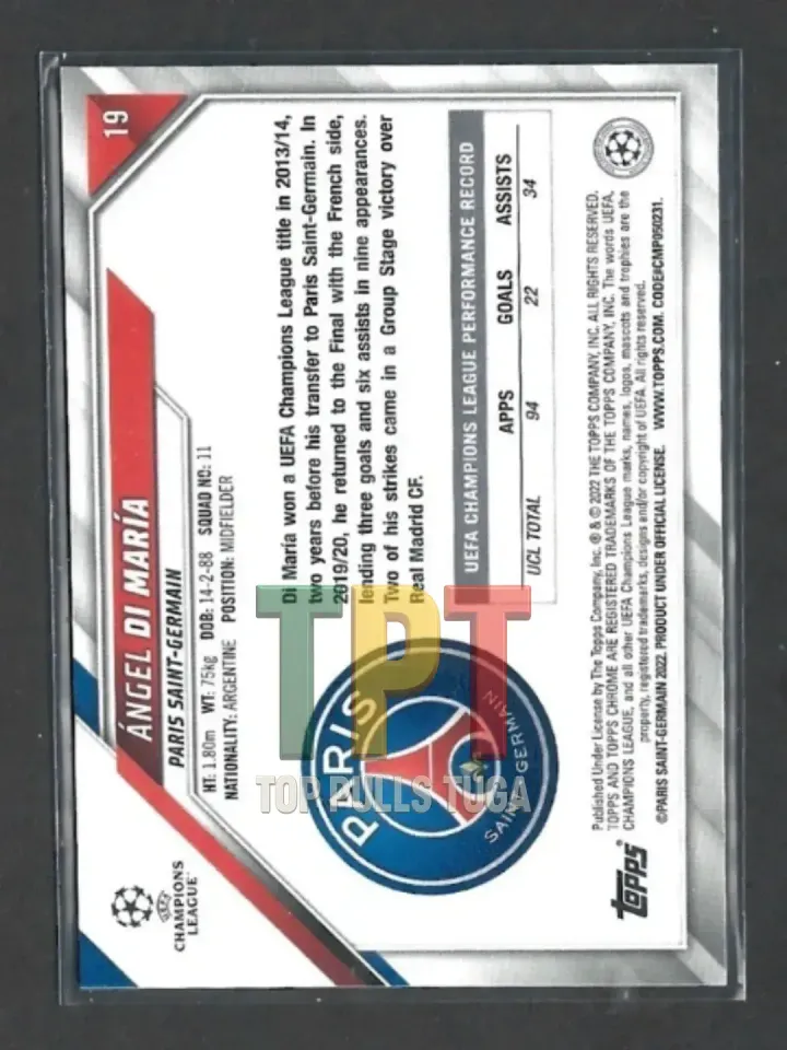 "Di María ganhou um título da Liga dos Campeões da UEFA em 2013/14, dois anos antes da sua transferência para o Paris Saint-Germain. Em 2019/20, ele voltou à final com a equipa francesa, contribuindo com três golos e seis assistências em nove jogos. Um dos seus golos foi numa vitória na Fase de Grupos sobre o Real Madrid CF."