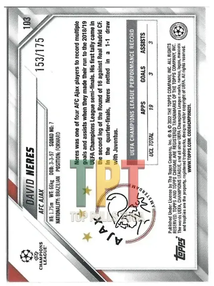 1xDavid Neres Pink Mini-Diamond Refractor /175 #103