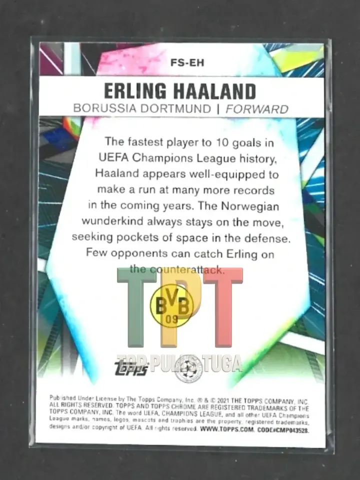 "O jogador mais rápido a atingir 10 golos na história da Liga dos Campeões da UEFA, Haaland parece bem preparado para bater muitos mais recordes nos próximos anos. O prodígio norueguês está sempre em movimento, procurando espaços na defesa. Poucos adversários conseguem apanhar Erling no contra-ataque."