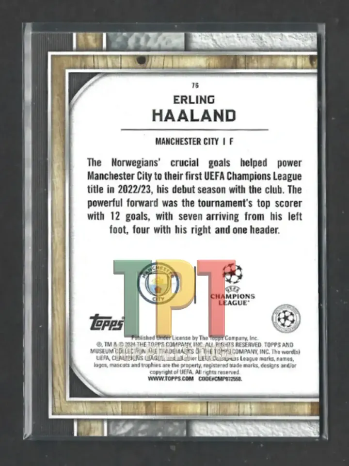 "Os golos cruciais dos noruegueses ajudaram o Manchester City a conquistar o seu primeiro título da Liga dos Campeões da UEFA em 2022/23, na sua temporada de estreia no clube. O avançado poderoso foi o melhor marcador do torneio com 12 golos, com sete a chegarem do seu pé esquerdo, quatro com o direito e um de cabeça."