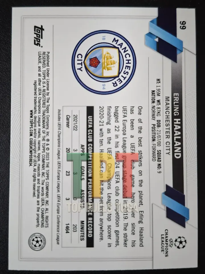 "Um dos melhores avançados do planeta, Erling Haaland tem sido uma máquina de golos desde a sua estreia na fase de grupos da UEFA Europa League em 2019. O avançado marcou 21 nos seus primeiros 24 jogos de competições de clubes da UEFA, terminando como o melhor marcador da UEFA Champions League em 2020/21 com dez. Haaland consegue encontrar o fundo da baliza em qualquer lugar."