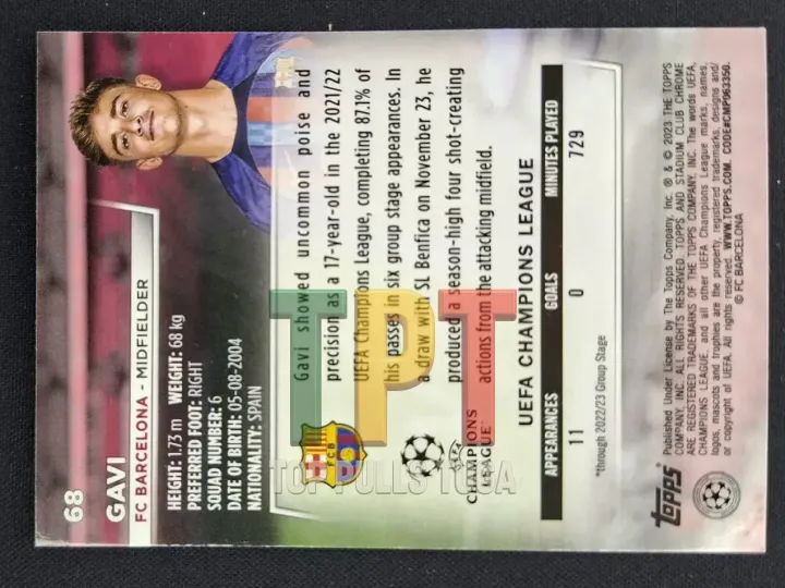 "Gavi mostrou uma compostura e precisão incomuns como um jovem de 17 anos na Liga dos Campeões da UEFA 2021/22, completando 87% dos seus passes em seis aparições na fase de grupos. Num empate com o SL Benfica a 23 de novembro, ele produziu um máximo de quatro ações criadoras de remates a partir do meio-campo ofensivo."