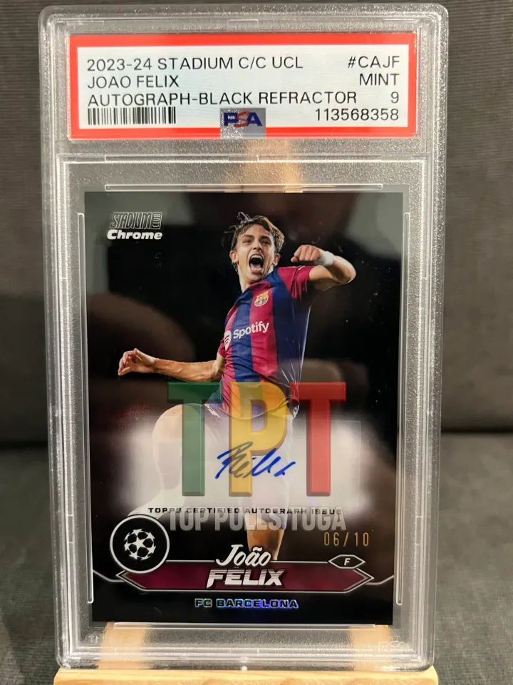 "Cartão Autógrafo Chrome da Topps Stadium Club Chrome UEFA Champions League 2023/24. A assinatura de todos os cartões autografados é testemunhada por um representante da Topps para garantir a autenticidade."