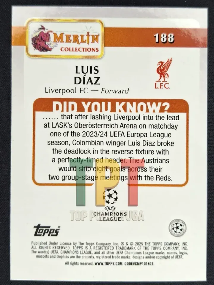 "Sabias? ...... que depois de colocar o Liverpool na frente na Arena Oberösterreich do LASK no primeiro dia de jogo da temporada 2023/24 da UEFA Europa League, o extremo colombiano Luis Díaz quebrou o empate no jogo inverso com um cabeceamento perfeitamente cronometrado. Os austríacos sofreriam oito golos nos seus dois encontros da fase de grupos com os Reds."