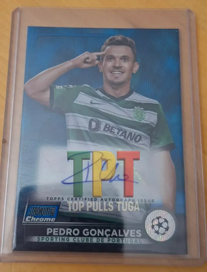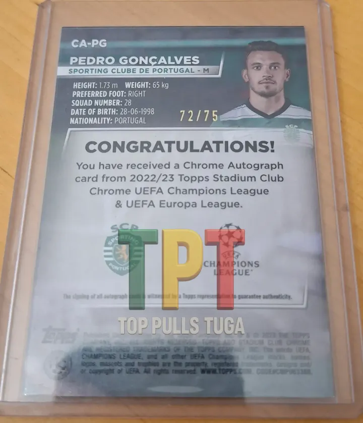 "PARABÉNS! Você recebeu um cartão Chrome Autograph da 2022/23 Topps Stadium Club Chrome UEFA Champions League & UEFA Europa League."