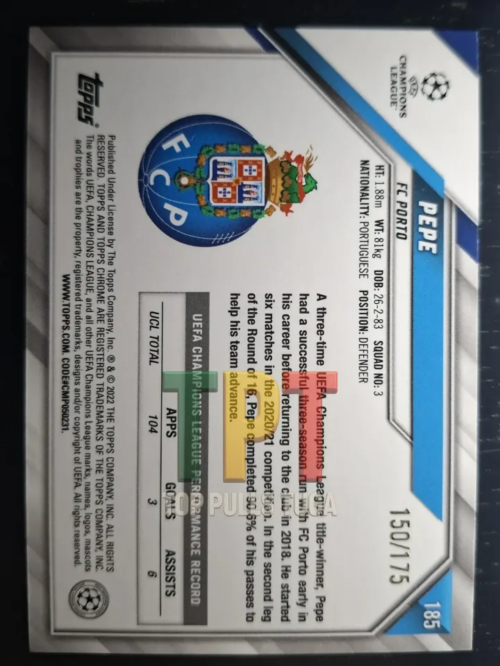"Vencedor de três títulos da Liga dos Campeões da UEFA, Pepe teve uma bem-sucedida passagem de três temporadas pelo FC Porto no início da sua carreira antes de regressar ao clube em 2018. Ele começou seis jogos na competição de 2020/21. Na segunda mão dos oitavos de final, Pepe completou 90% dos seus passes para ajudar a sua equipa a avançar."