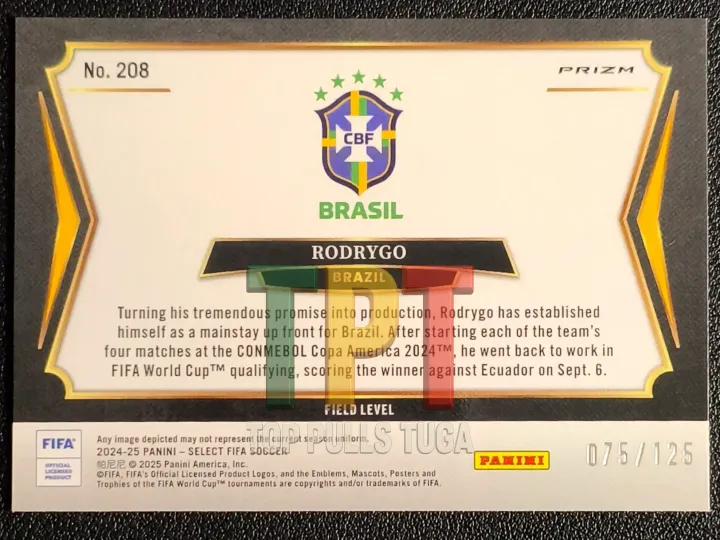 Rodrygo /125 Orange Fluorescent Select Fifa Panini