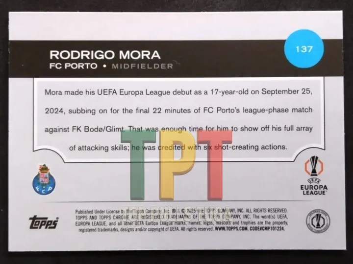 2024-25 Topps Chrome UCC Rodrigo Mora Rookie Card Speckle Parallel