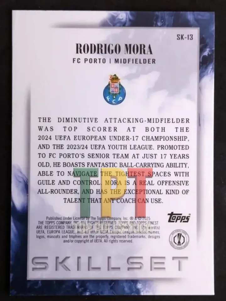 2024-25 Topps Finest UCL Rodrigo Mora Rookie Card Skill Set Insert SK-13